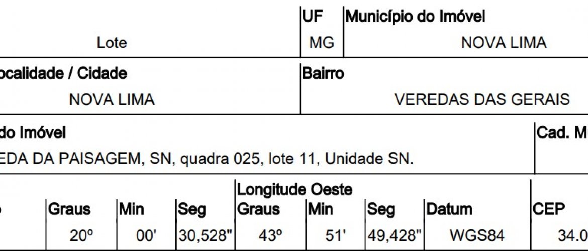 TERRENO, NO BAIRRO LT 11 VEREDAS DAS GERAES, NA CIDADE NOVA LIMA, NO ESTADO MG